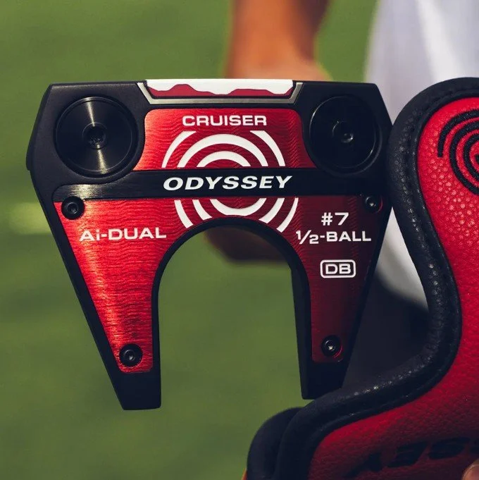 Featuring Odyssey's next revolutionary alignment technology, the 1/2 Ball design frames the ball helping to center your impacts and improve your aim. Powered by our Ai-DUAL insert delivering consistent ball speed across the face with improved forward roll the Ai-DUAL the Seven is a classic Odyssey shape and this model comes with a Double Bend shaft making this putter face balanced and best suited for strokes with minimal arc and face rotation. This one comes in our Cruiser configuration which is longer and heavier overall.